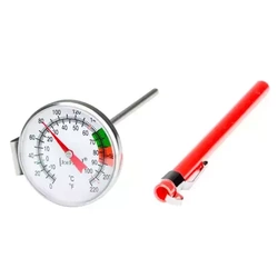 Termometr wykonany ze stali nierdzewnej, który doskonale sprawdzi się do odmierzania temperatury wody do przygotowania kawy lub herbaty. Termometr jest wyposażony w uchwyt.