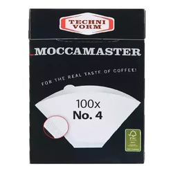Papierowe filtry do ekspresów przelewowych Moccamaster o rozmiarze 4 cup. Opakowanie zawiera 100 sztuk filtrów.